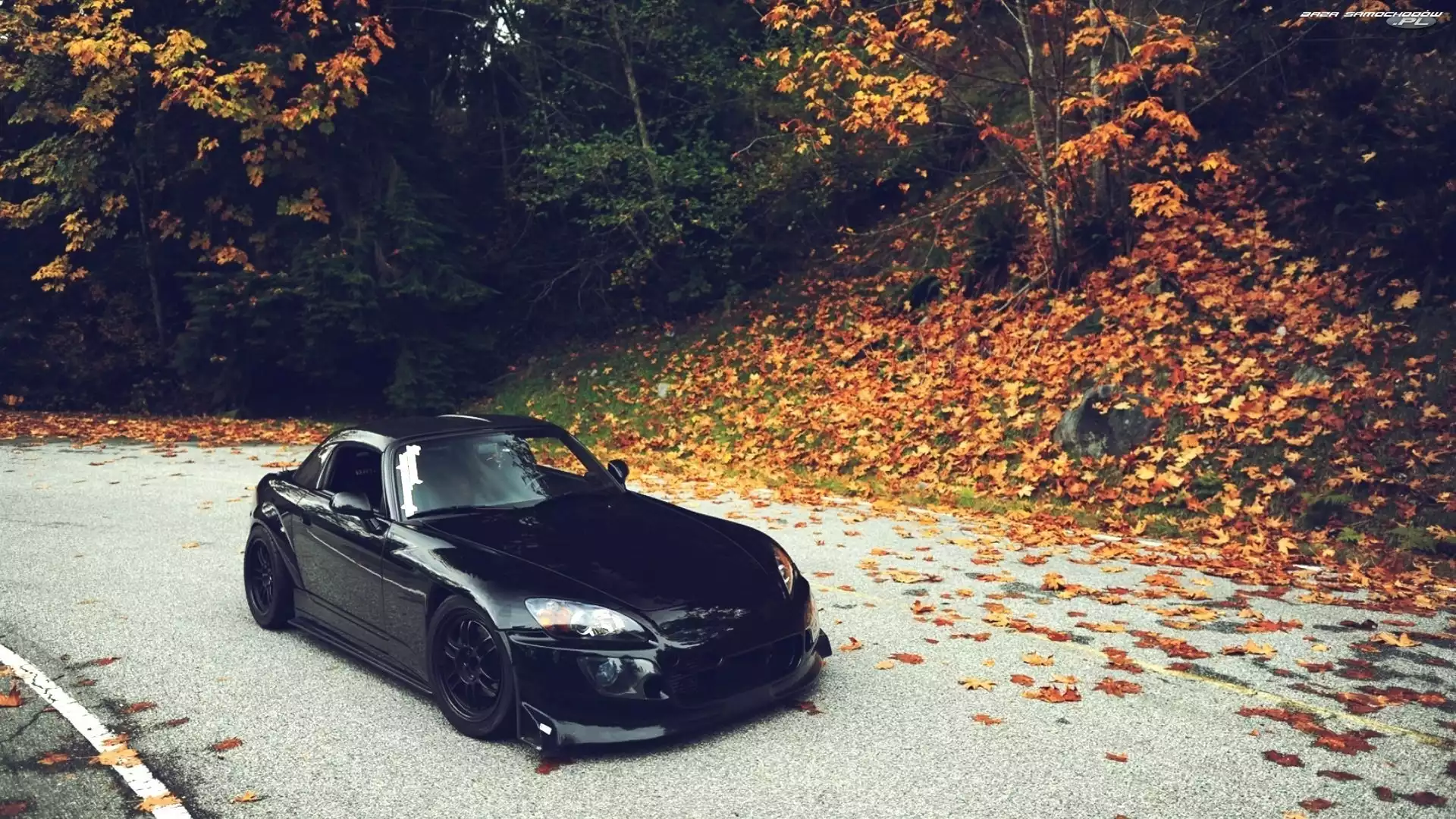Samochód: Jesień, Liście, Droga, Honda, Las