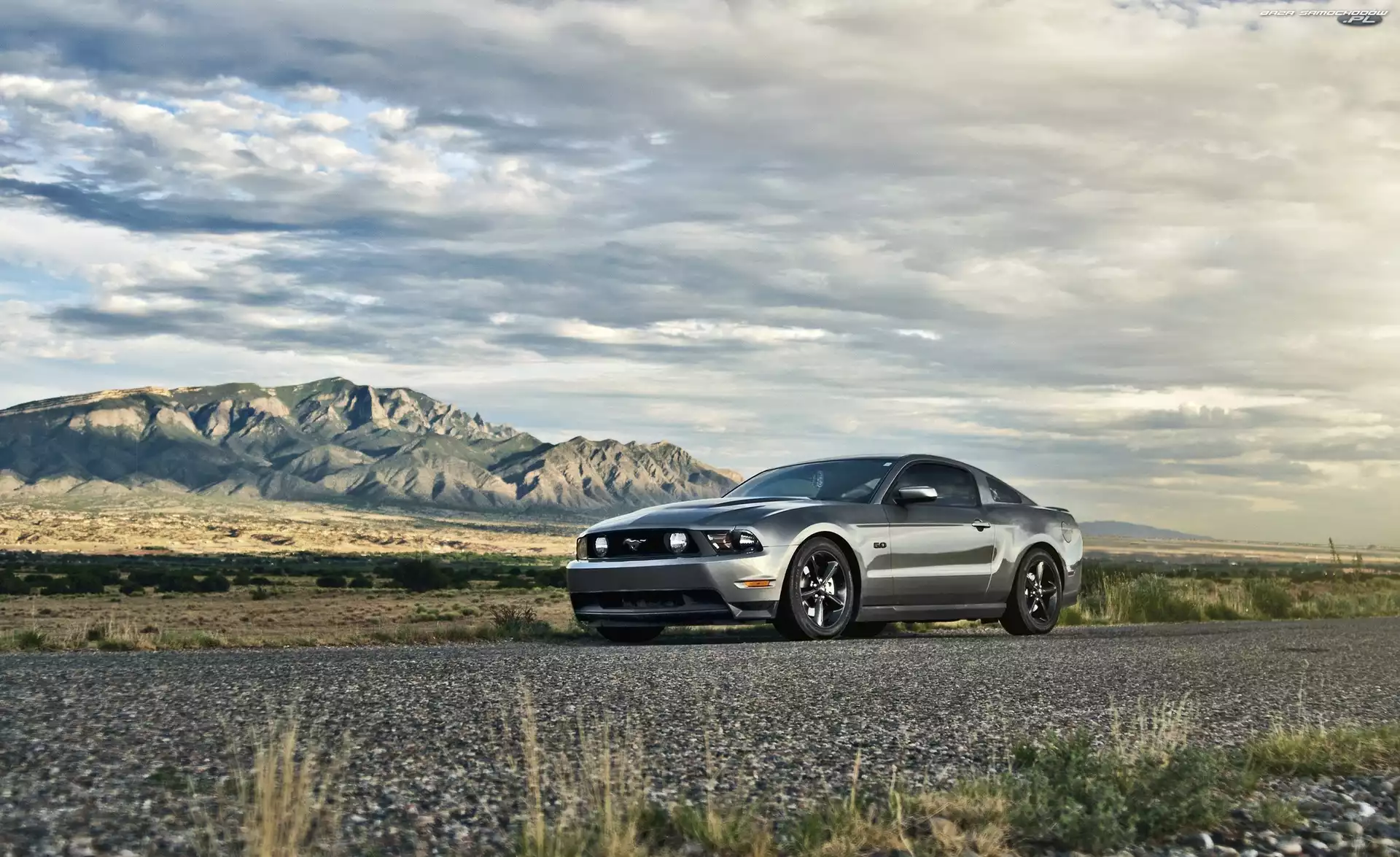 Mustang, Pustynia, Ford, Droga- Zdjęcia samochodów