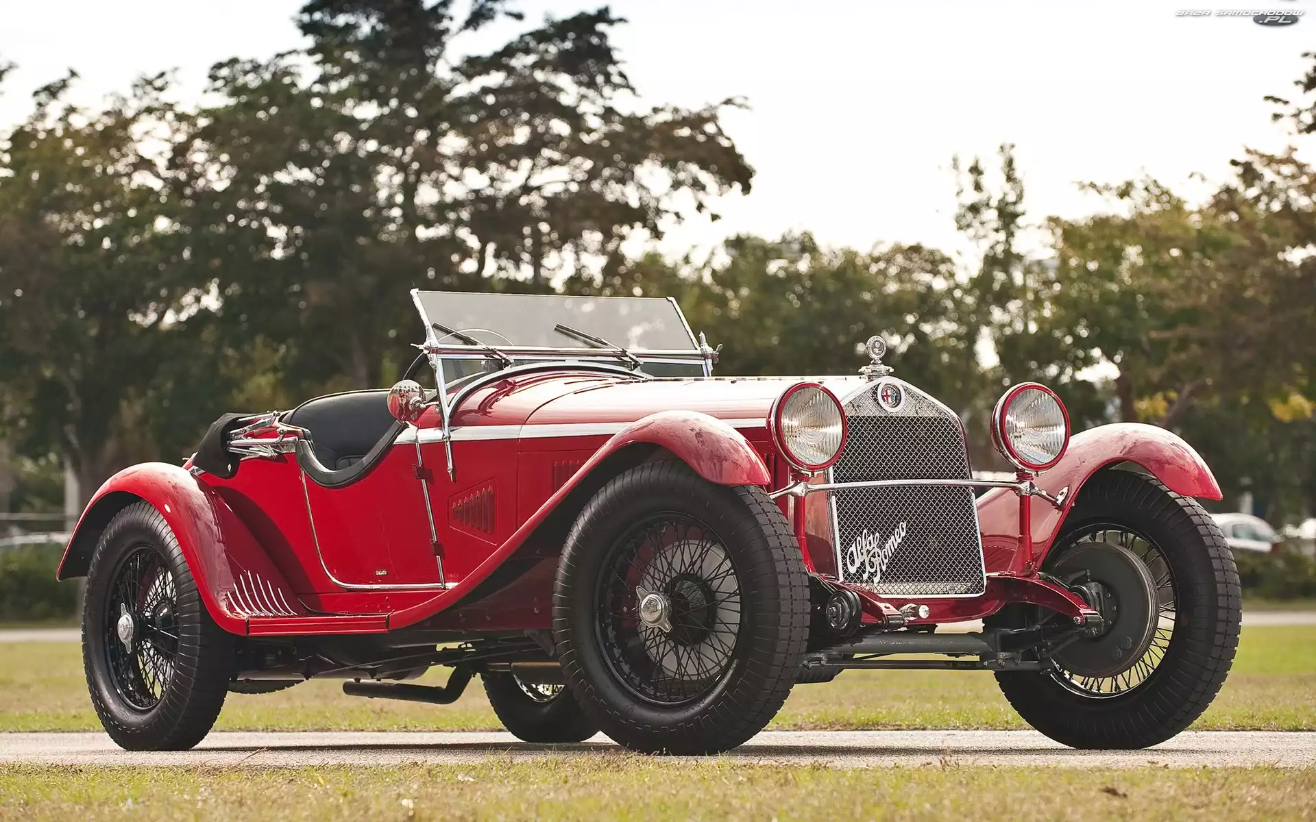 Samochód: Zabytkowy, Drzewa, Alfa Romeo, Park